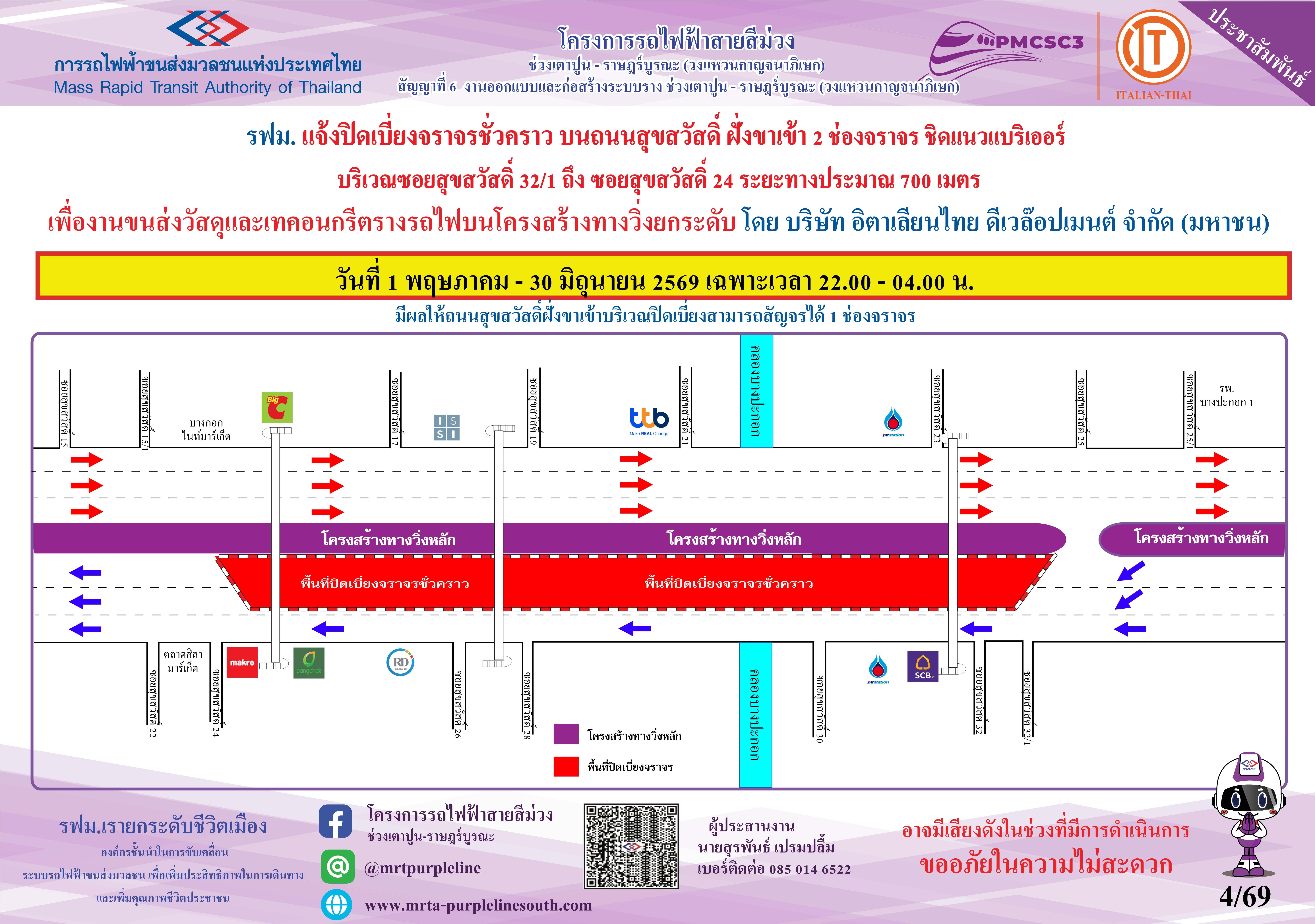 งานขนส่งวัสดุและเทคอนกรีตรางรถไฟบนโครงสร้างทางวิ่งยกระดับ สุขสวัสดิ์ 32