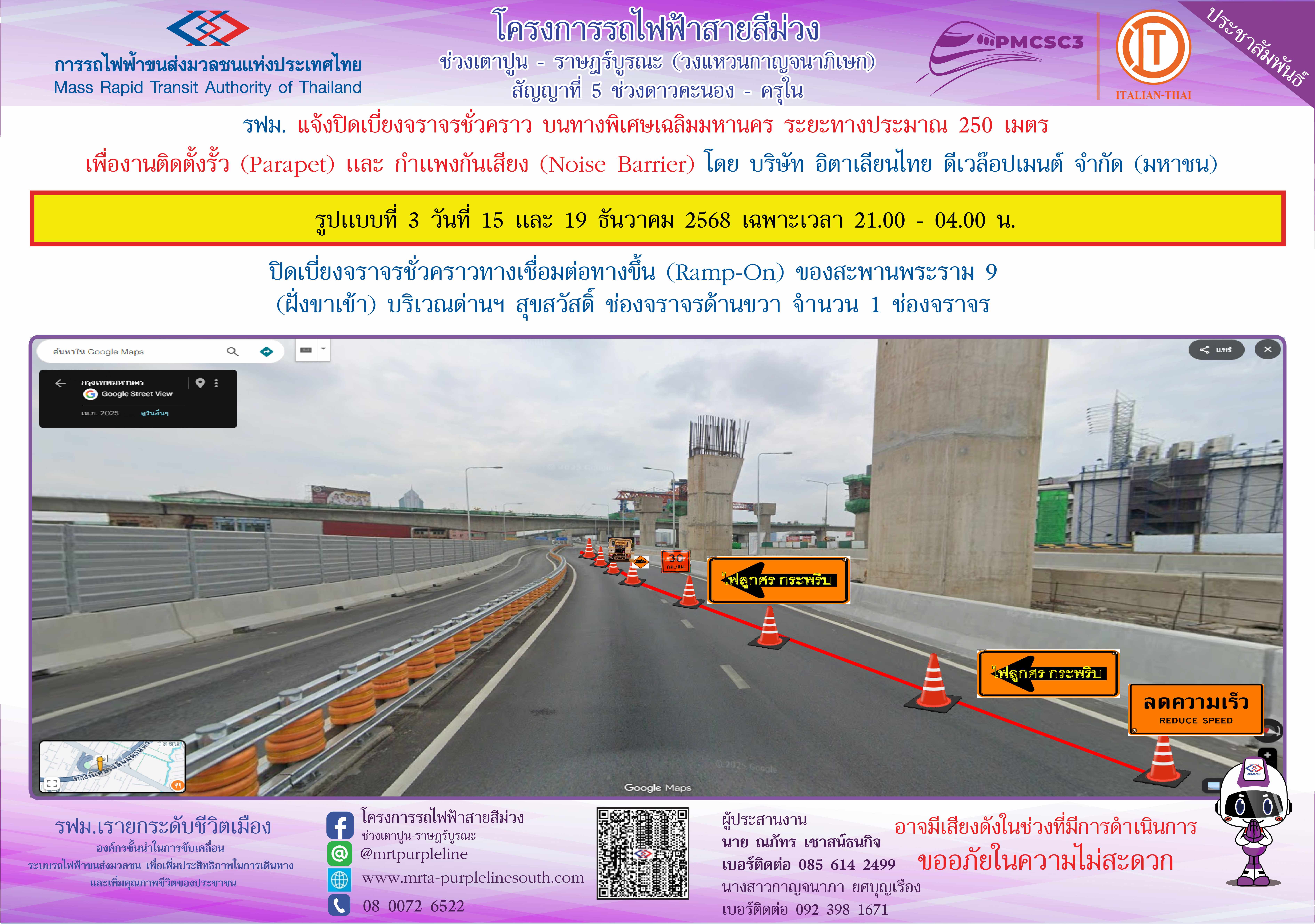 งานติดตั้งรั้ว (Parapet) และกำแพงกันเสียง (Noise Barrier) บนทางพิเศษเฉลิมมหานคร
